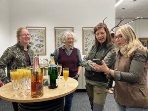 Ein besonderes Highlight des Abends war erneut das beliebte jagdliche Schrottwichteln. Hierfür brachte jede Teilnehmerin einen jagdlichen Gegenstand mit, der im eigenen Haushalt entbehrlich geworden war. Beim anschließenden Würfeln ging es hoch her: Jagdhüte, Dekoartikel und viele weitere „Schätze“ wechselten in rasantem Tempo ihre Besitzerinnen. Es wurde viel gelacht, und schnell war man sich einig – das Schrottwichteln soll zur festen Tradition werden.