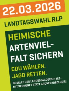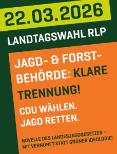 Mir ist wichtig, den Dialog mit der Jägerschaft fortzuführen. Die CDU Rheinland-Pfalz steht klar für Wald, Wild und Jagd sowie für ein Landesjagdgesetz, das gemeinsam mit den Jägerinnen und Jägern entwickelt wird.